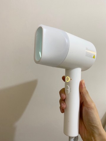 小米吹風機,風量大,外型很簡約。機身材質若與其他東西放一起容易髒(可用橡皮擦清潔),我都另外存放。